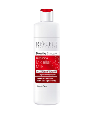 Revuele Cleansing Micellar Milk is a soothing, milky cleanser that dissolves even stubborn waterproof makeup without stripping the skin. Enriched with Alpine Rose stem cell extract, it delivers deep hydration and protects against daily pollutants. The formula also features anti-aging peptides that help slow visible ageing and encourage collagen synthesis.