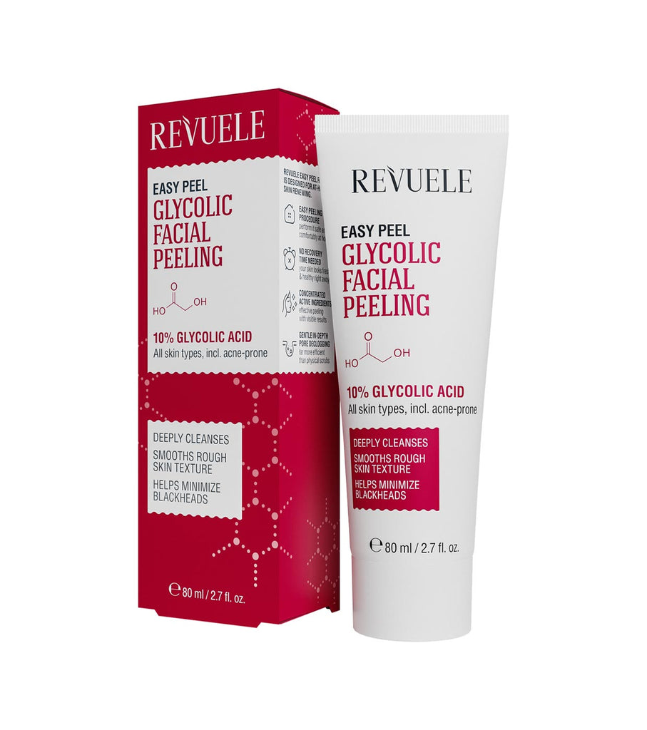 Revuele’s Easy Peel brings professional exfoliation into your evening ritual. Formulated with 10% Glycolic Acid, this gentle yet effective peel dissolves dead skin cells, excess sebum, and impurities for a refined, luminous finish.